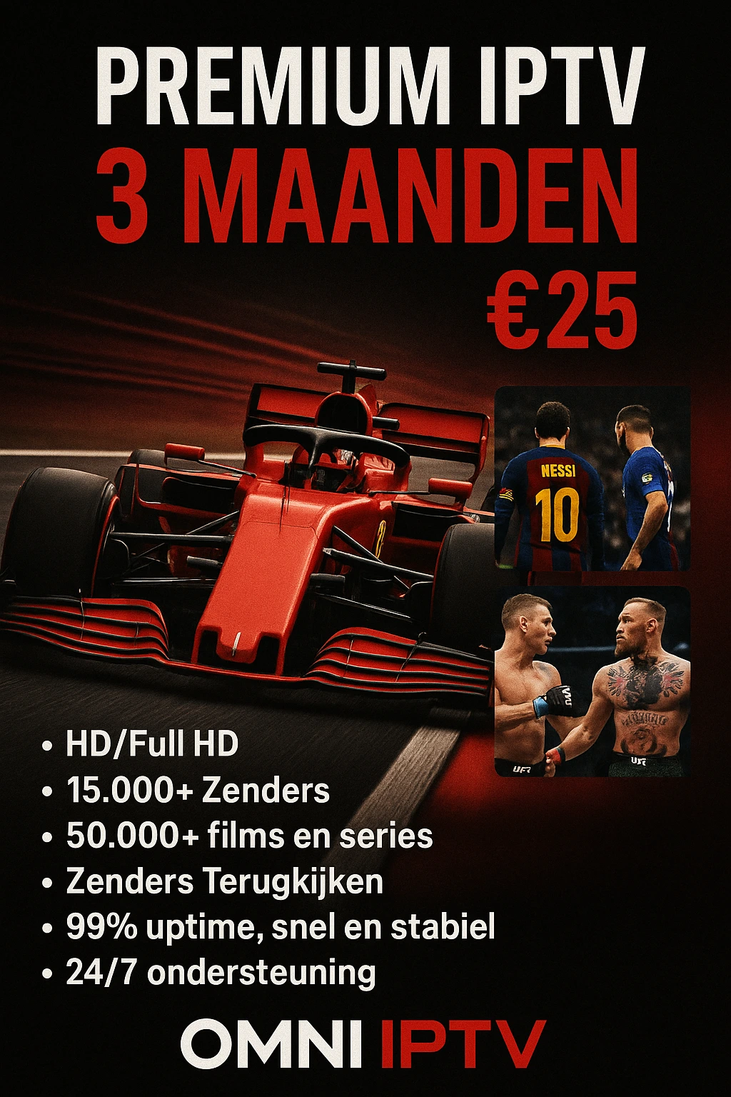 Ontdek drie maanden lang grenzeloos kijkplezier met PREMIUM IPTV. Perfect voor wie eerst wil proeven van ons uitgebreide aanbod of flexibel wil blijven. Geniet van haarscherp beeld, razendsnelle prestaties en een eindeloze keuze aan entertainment, allemaal zonder ingewikkelde installatie.